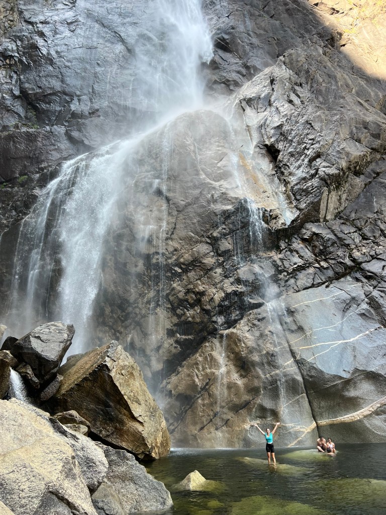 Our first stop in the park was Lower Yosemite Falls trail, once arrived we couldn’t resist! We hiked the rocks and saw the Falls, of coursed we swam and took our lucky pictures. The water was freezing but the experience was 100% worth it.