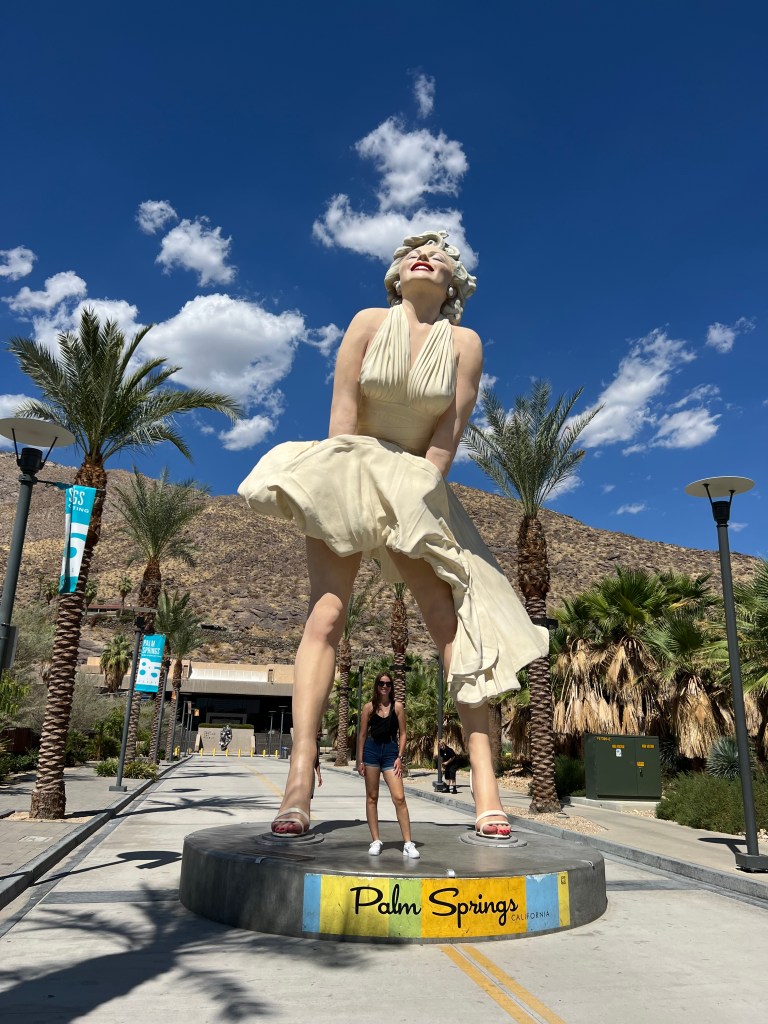 There is a huge Marilyn Monroe statue situated in the heart of downtown Palm Springs, at the intersection of Museum Way and Belardo Road. Located near the Art Museum and within walking distance of the shopping, dining, and entertainment district.